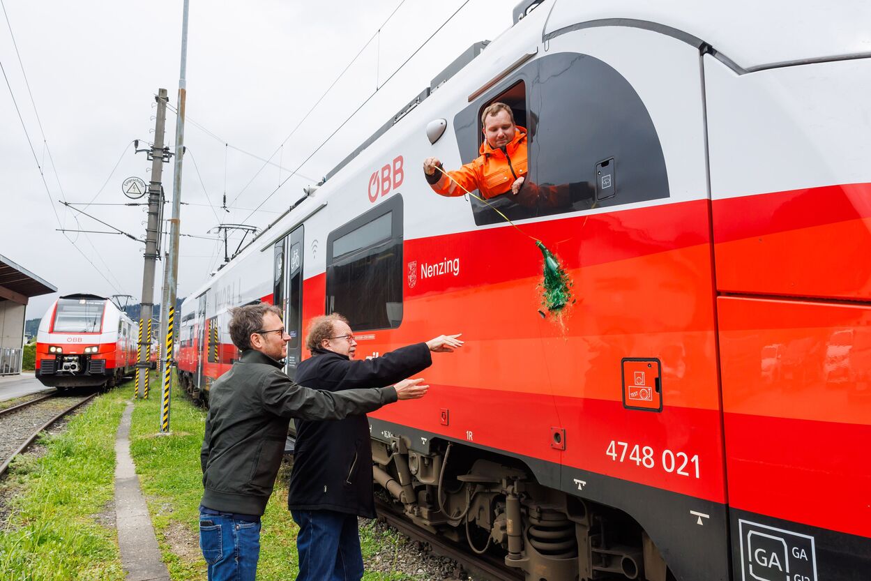 Mobilitätslandesrat Daniel Zadra und ÖBB-Personenverkehr-Regionalmanager Marcus Ender nahmen gemeinsam mit den BürgermeisterInnen Andrea Kaufmann (Dornbirn), Florian Kasseroler (Nenzing), Nico Flachsenberger (Eichenberg), Lukas Greussing (Möggers), Andreas Kresser (Hörbranz), Wolfgang Langes (Hohenweiler), Frank Matt (Lochau) sowie mit Gemeinderat Alexander Schwaszta (Rankweil) die kurze Zeremonie vor.