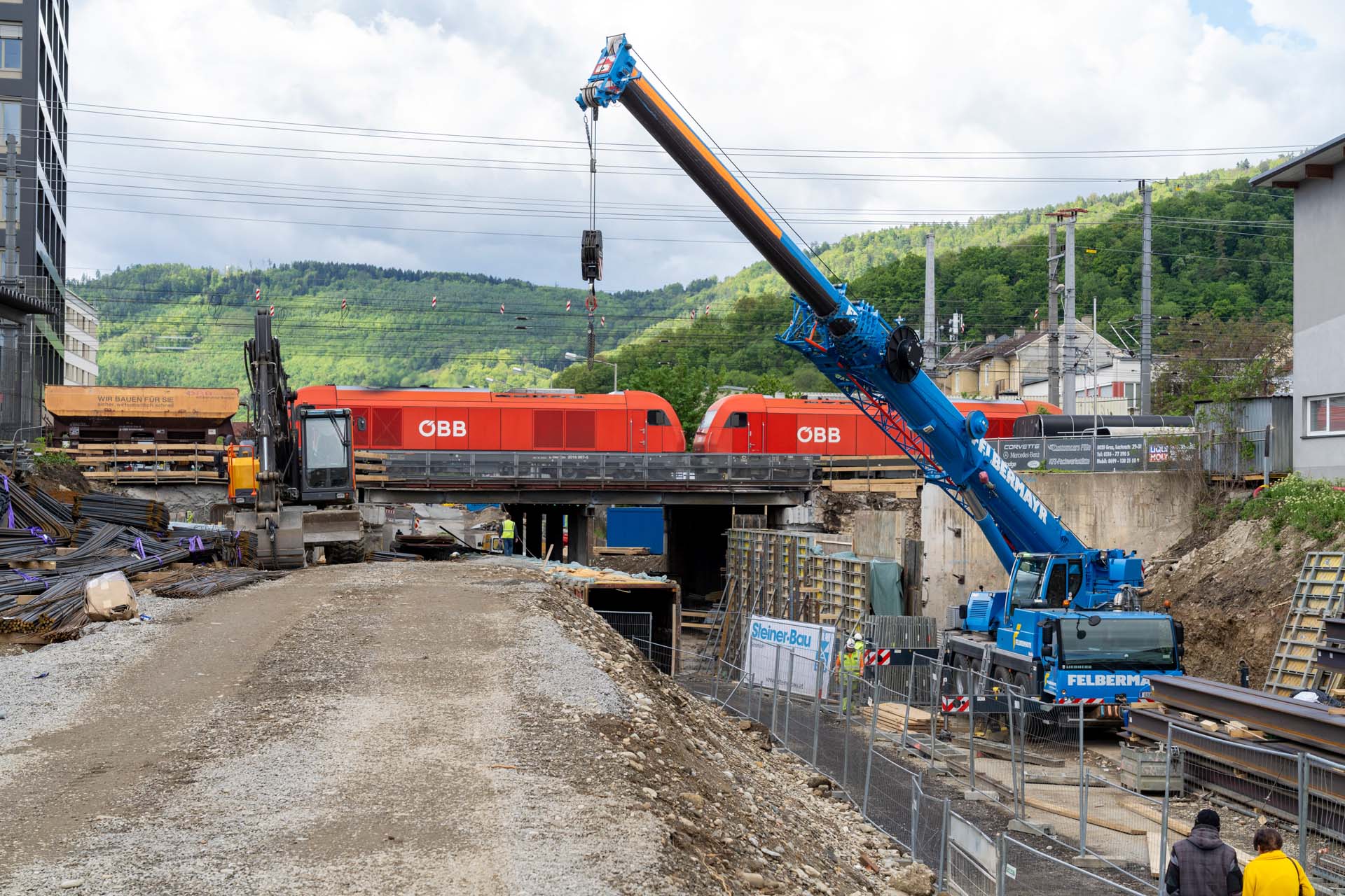 Die in die Jahre gekommene Eisenbahnbrücke über die Peter-Tunner-Gasse im Grazer Norden, wird derzeit neu gebaut und damit fit gemacht für die Zukunft. Um den Bahnbetrieb aufrecht erhalten zu können, geschieht der Neubau in mehreren Phasen. Vereinfacht gesagt werden drei Brückentragwerke mit je zwei Gleisen hintereinander ab- und wieder neu gebaut. Das ist notwendig, weil aufgrund der Spannweite keine Hilfsbrücken eingesetzt werden können. Gleichzeitig müssen für den Betrieb der Südbahn jederzeit vier von sechs Gleisen befahren werden können.