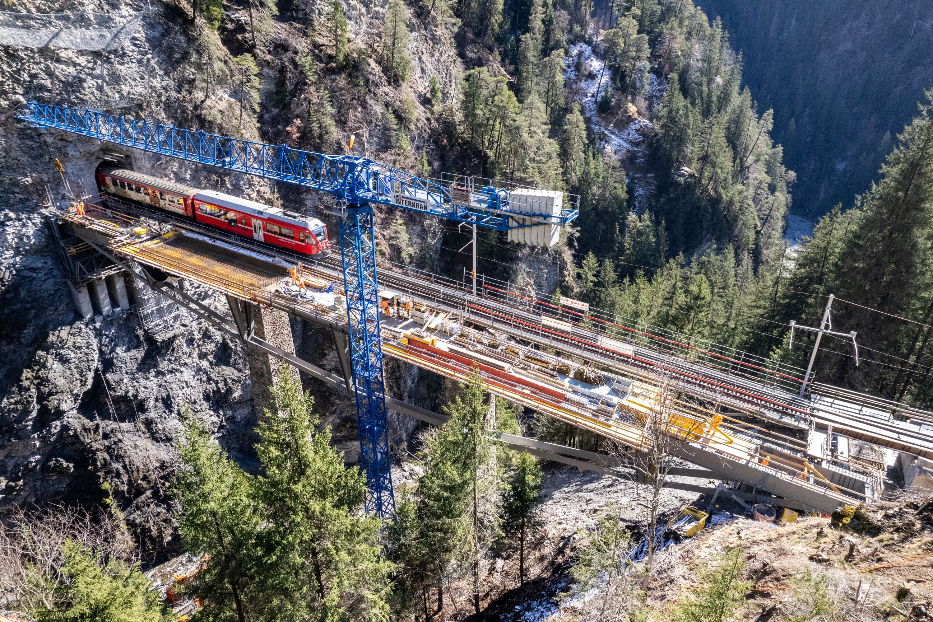 Für den Rückbau des alten und den Einschub des neuen Castielerviadukts wird die Strecke Chur – Arosa der Rhätischen Bahn (RhB) vom 11. Mai bis 26. Mai 2024 für den Zugverkehr gesperrt. Es verkehrt ein leistungsfähiger Ersatzbetrieb.