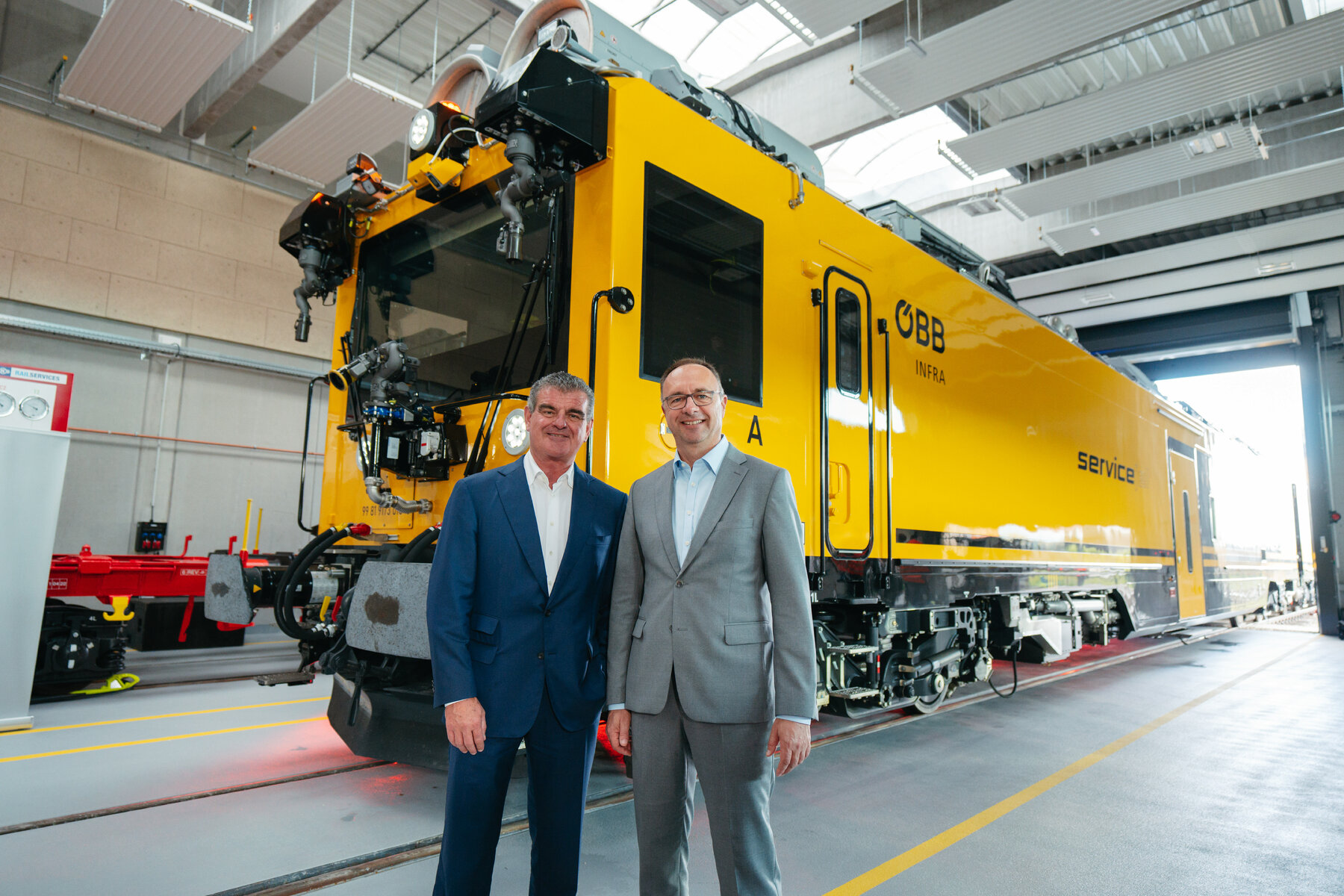 Die zukunftsweisende Erneuerung der Rettungszugflotte der ÖBB-Infrastruktur AG nimmt weiter Fahrt auf. Am 25. August 2023 präsentierten die ÖBB und Stadler den ersten von 18 neuen sogenannten Servicejets. © ÖBB