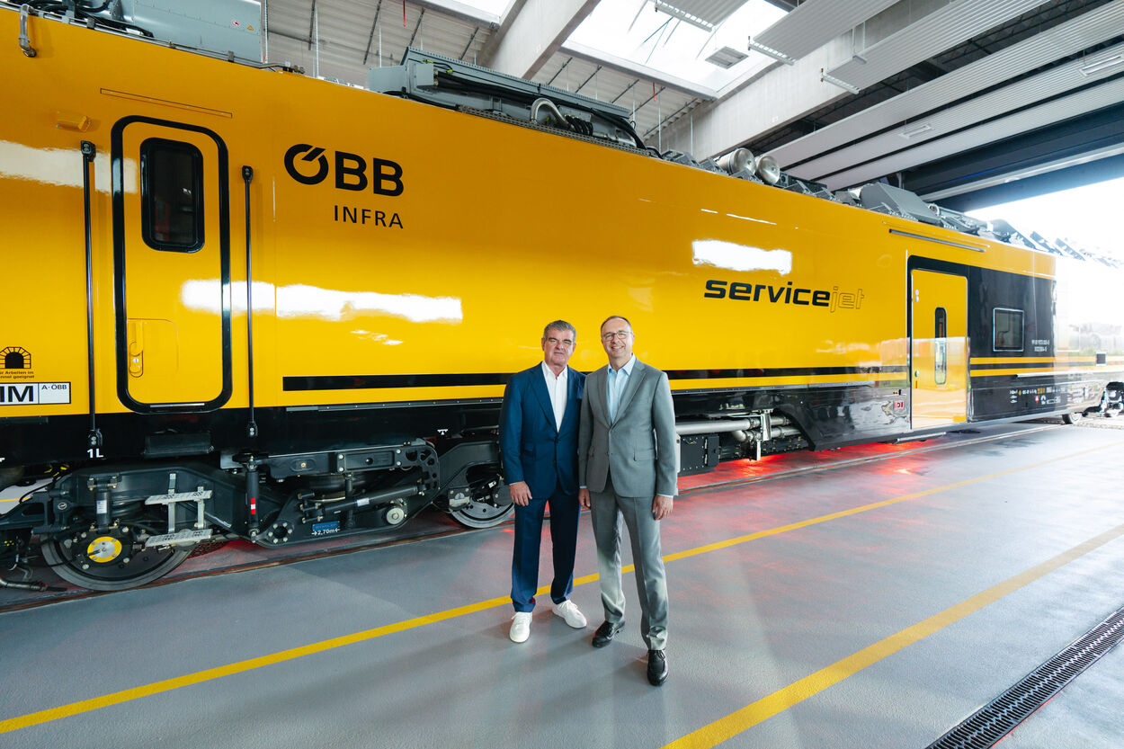 Peter Spuhler und Johann Pluy vor dem "Servicejet" © ÖBB / Stadler