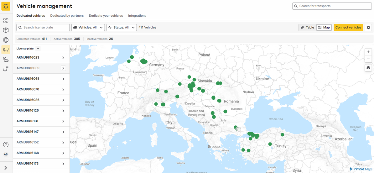 Echtzeit-Tracking: Durch den Einsatz von Telematik zur Erfassung von Primärdaten können Verlader ihre Bahnsendungen in Echtzeit über die Transporeon-Plattform verfolgen.