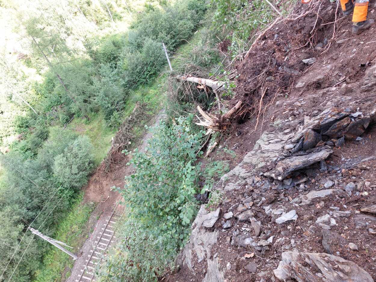Der Güterverkehr wird nach Möglichkeit umgeleitet. Ab Sonntag, 14. Juli 2024, 19:00 Uhr, kann der Zugverkehr voraussichtlich eingeschränkt (mit einem Gleis) wieder aufgenommen werden. Im Laufe des Montagvormittags werden die Reparaturarbeiten vorrausichtlich abgeschlossen und der Zugverkehr ist dann wieder uneingeschränkt möglich.