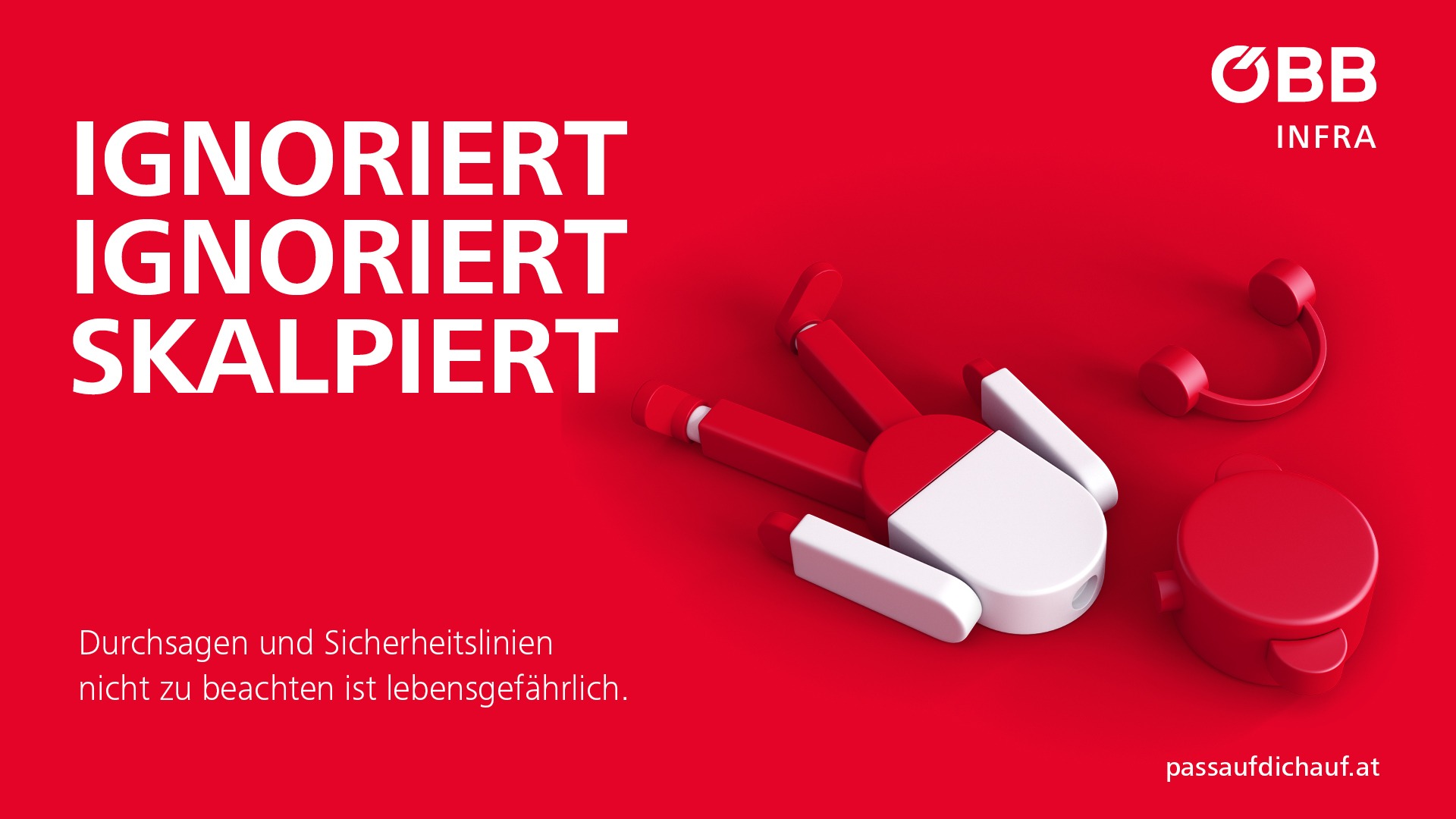 Pünktlich zum Schulstart setzen die ÖBB auf Bewusstseinsbildung zur Vermeidung von Gefahren an Bahnanlagen. Denn bei der Sicherheit gibt es keine Kompromisse. Das drückt auch die aufmerksamkeitsstarke Sicherheitskampagne aus. Sie hat das Ziel, das Bewusstsein für die sichere Benutzung von Bahnanlagen bei Kindern, Jugendlichen und Erwachsenen zu schärfen – mit bewusst aufrüttelnden Sujets auf Bahnhöfen, in Print-, Online- und den Sozialen-Medien, die zum Nachdenken und zur Diskussion anregen sollen. Es geht um (lebens-)gefährliche Situationen – aus Unachtsamkeit, Unwissenheit, aber auch Mutproben – beim verbotenen Queren von Bahngleisen, am Bahnsteig, beim Klettern auf Waggons durch Stromüberschlag oder um Unfälle an Eisenbahnkreuzungen.