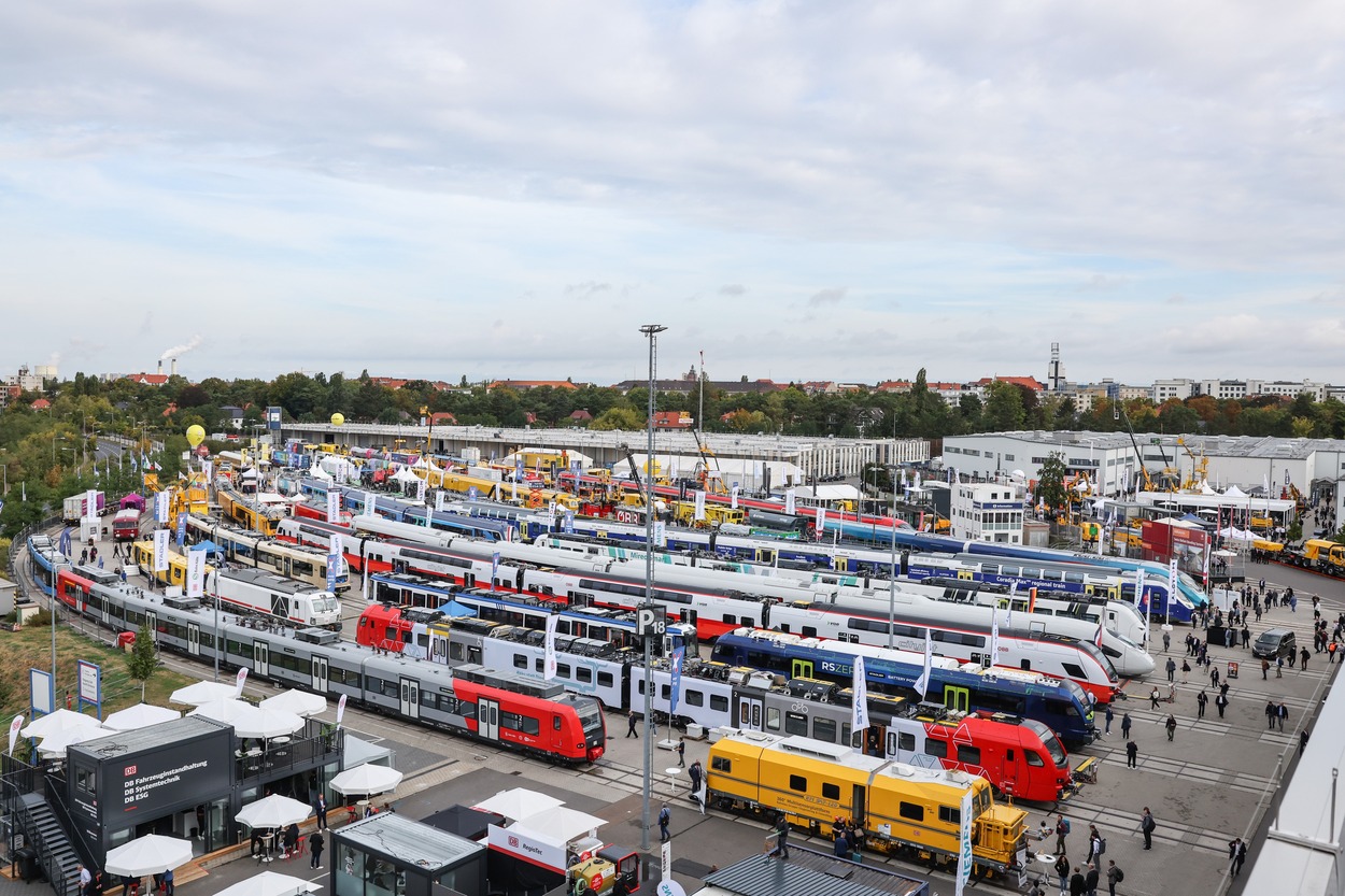 Die 2.940 Aussteller aus 59 Ländern stellten ihre neuesten Produkte und Dienstleistungen in den fünf Messesegmenten Railway Technology, Railway Infrastructure, Public Transport, Interiors und Tunnel Construction vor. Dabei wurde die Messe in diesem Jahr noch internationaler. Rund 600 neue Aussteller waren dabei – und mit ihnen neue Länder wie Marokko, Malaysia, Indonesien und Südafrika. Auf dem Gleisgelände präsentierten Aussteller aus aller Welt 133 Fahrzeuge, die auf den 3.500 laufenden Gleismetern präsentiert wurden. Im Bus Display im Sommergarten konnten Fachbesuchende auf einem 500 Meter langen Rundkurs elf Busse im Live-Betrieb erleben.