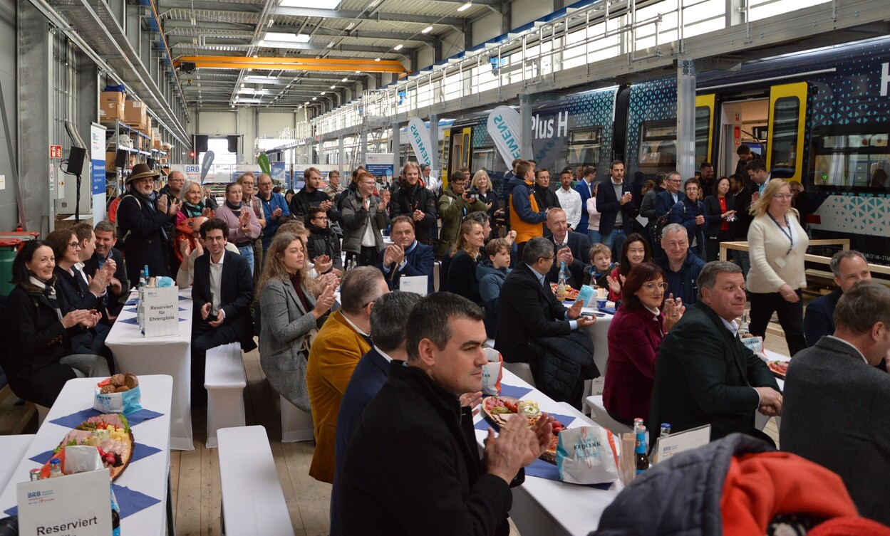 Das Interesse am Wasserstoffzug im BRB-Bahnbetriebswerk in Augsburg war sehr groß. © BRB