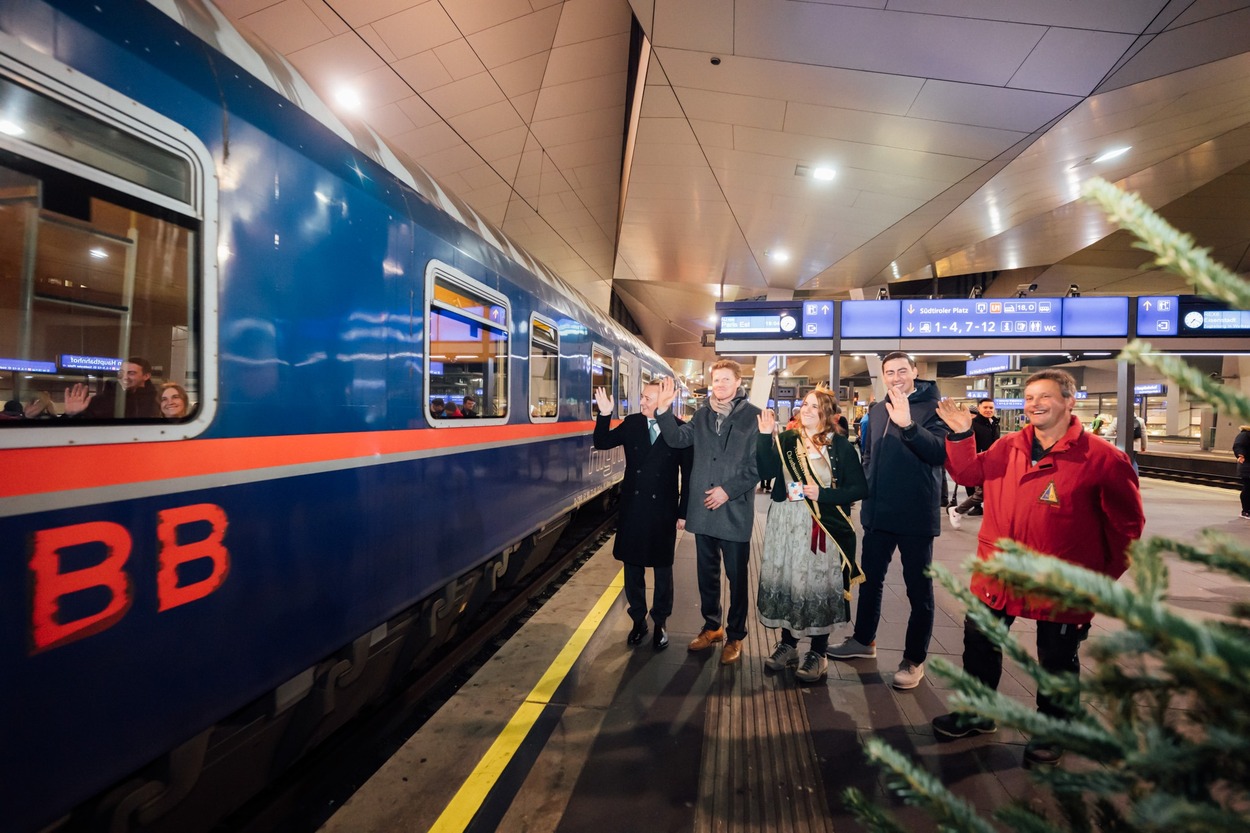 Das Christkind bringt die Geschenke und die ÖBB den Baum: In bewährter Tradition wurde am 27. November eine knapp 4-Meter hohe Tanne in Wien in einen Nightjet Sonderwagen verladen und am Wiener Hauptbahnhof auf die Reise geschickt.
