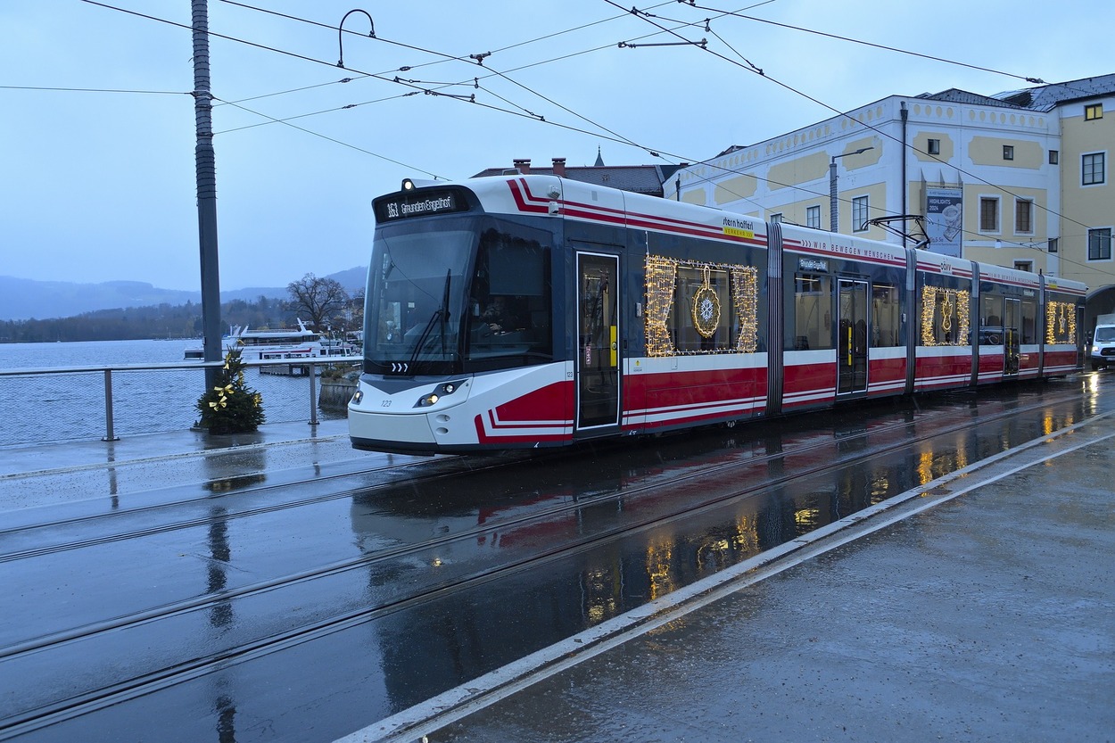 Erstmals schmückt eine festliche Weihnachtsbeleuchtung einen Tramlink der Traunseetram. Damit wird die vorweihnachtliche Stimmung in der Stadt unterstrichen, als auch ein weiteres Zeichen für den besonderen Charakter von Gmunden gesetzt.