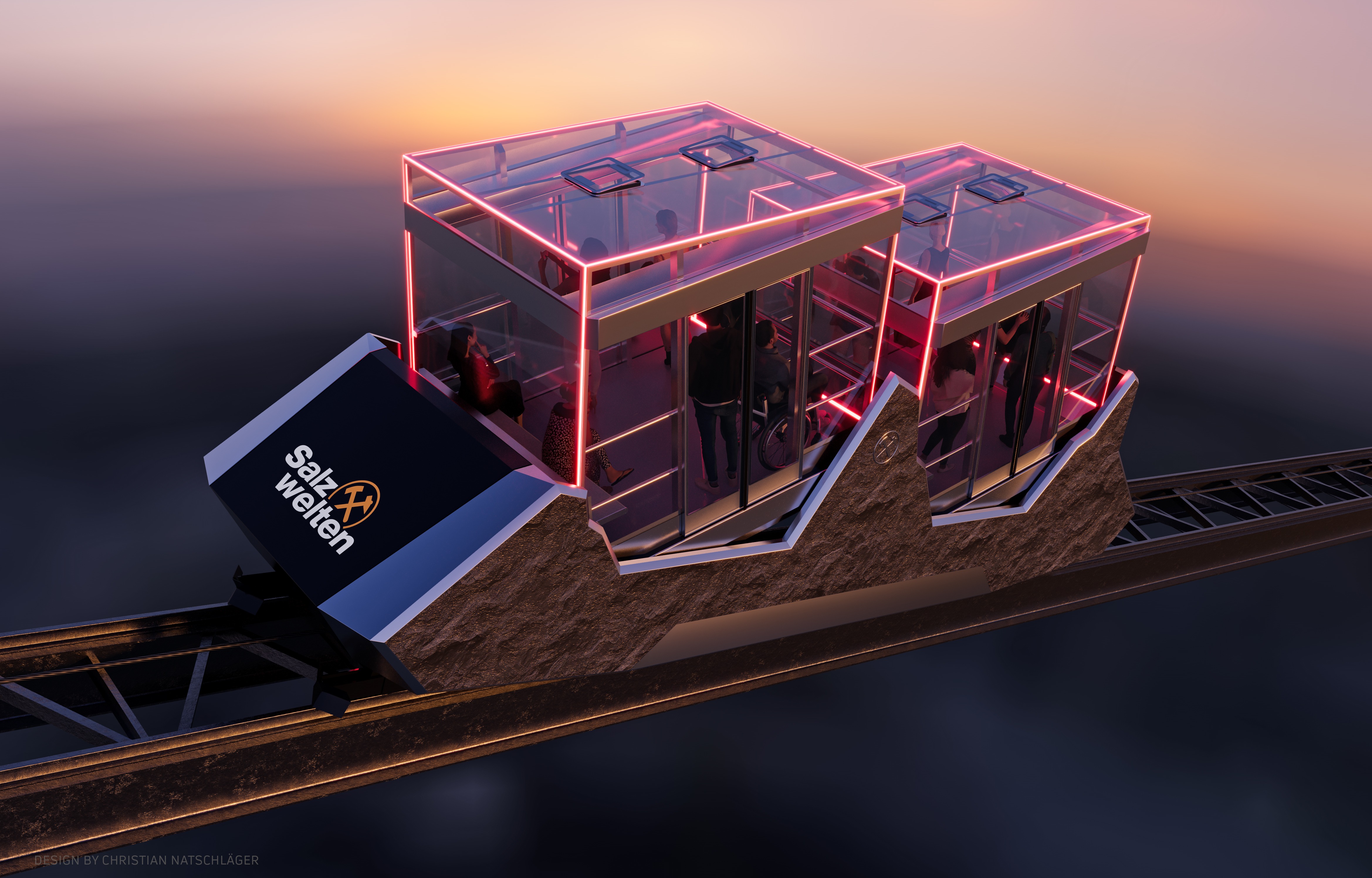 Für die technische Umsetzung der neuen Seilbahn zeichnet die Doppelmayr Gruppe – vertreten durch Garaventa, den Standseilbahn-Experten, sowie Carvatech, dem Kabinenhersteller aus Oberweis – verantwortlich. Die Kabinen verfügen über eine innovative Niveauregulierung, die einen barrierefreien Zu- und Ausstieg ermöglicht. Das Design der modernen Glas-Kabinen orientiert sich an der Form von „Salzkristallen“ und setzt damit ein markantes, einzigartiges architektonisches Zeichen.