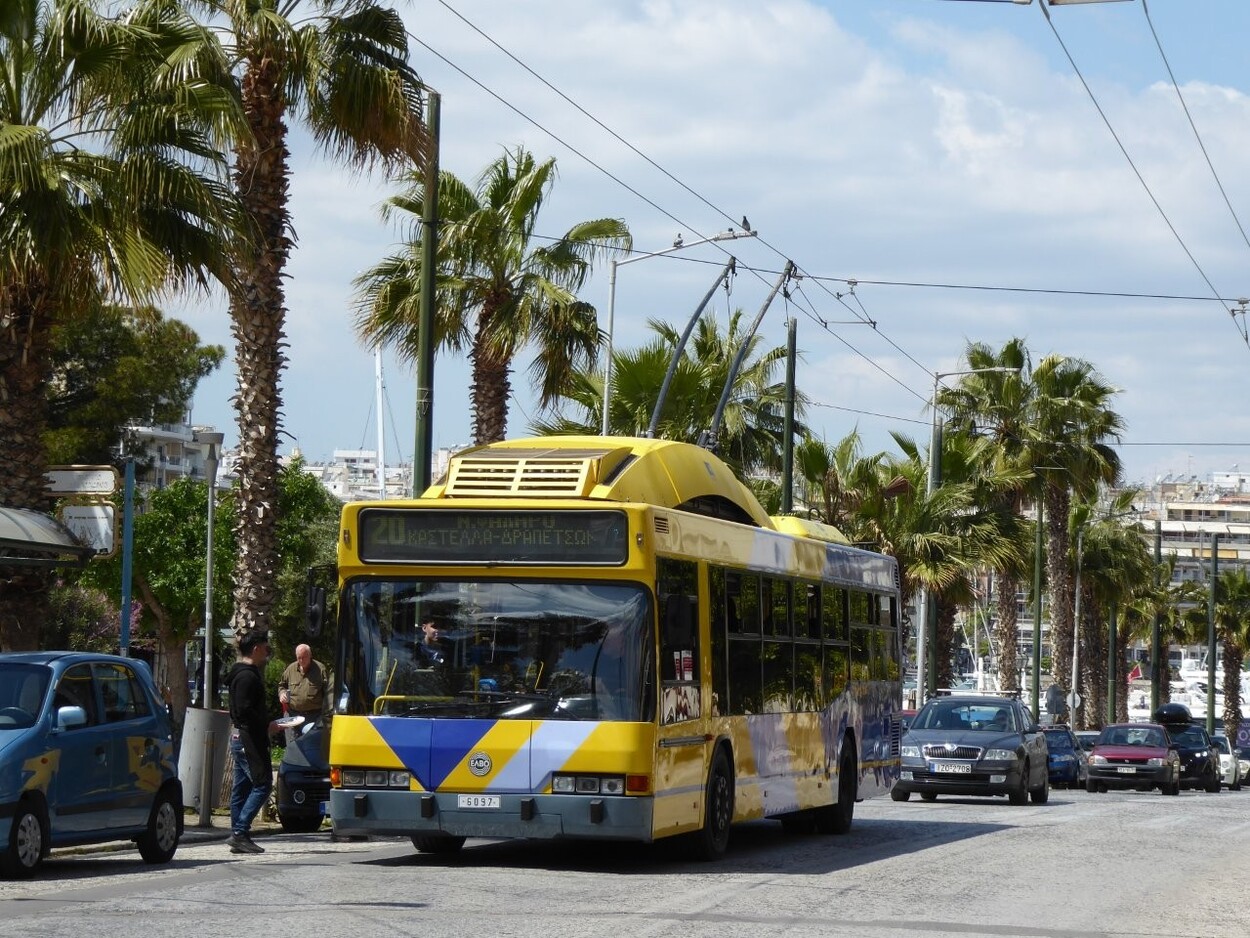Trolleybuses started to work in this Greek harbour city in 1948 – originaly intended to open in 1940 the delay was because of WW II. The first line – today line 20 – was the one and only line until 1988 when two further lines (16 and 17) and a link to the Athen`s huge trolleybus system opened.
