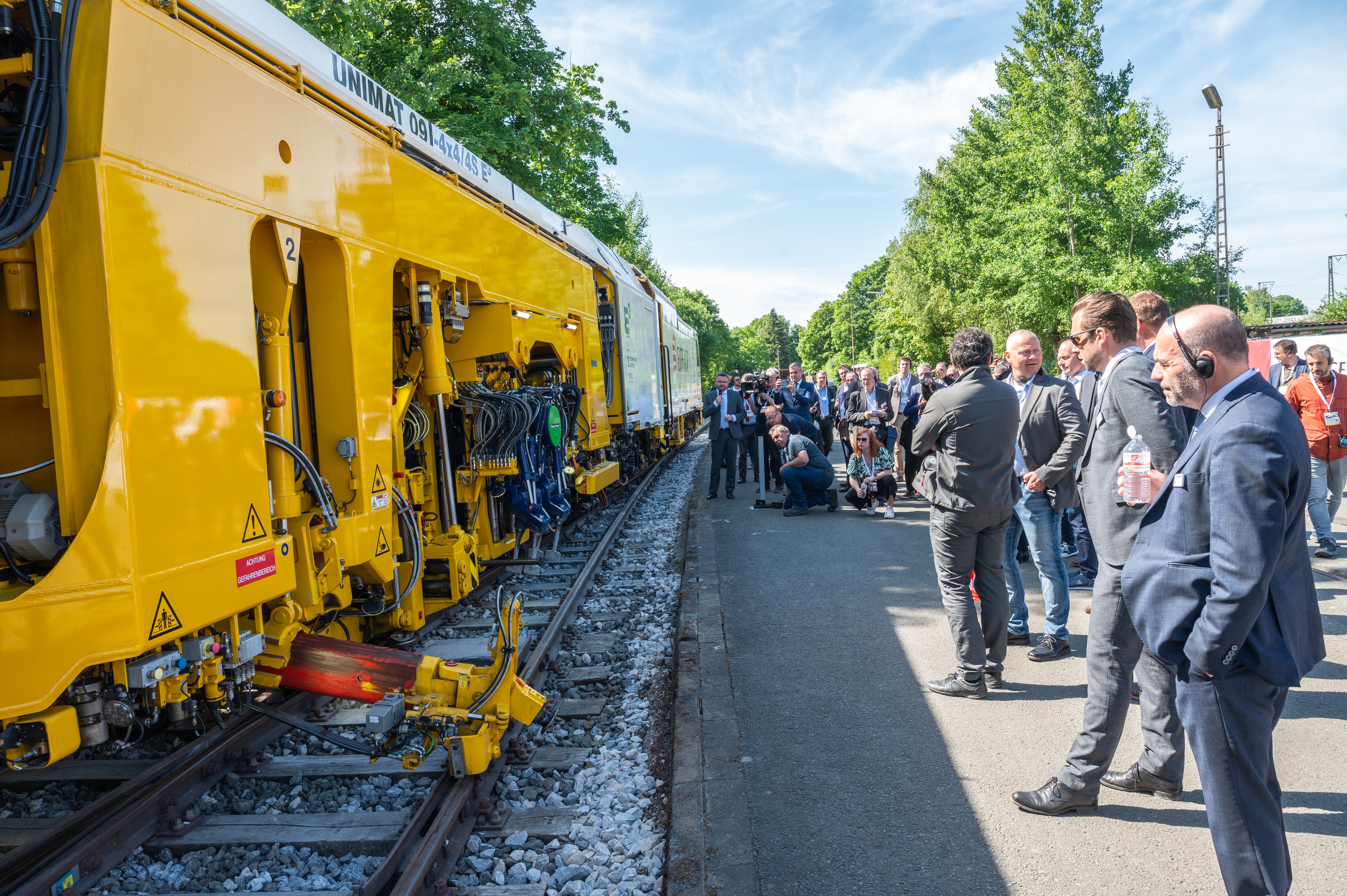 Im Rahmen der Live-Demonstration auf der iaf wurde der autonome Einsatz des Unimat 09-4x4/4S E³ der Firma Eiffage Infra-Rail GmbH einem breiten Publikum vorgeführt. Die Maschine stopfte vollautomatisch eine Weiche – ohne Personal in der Stopfkabine. Sascha Frölich, technischer Leiter bei Eiffage Infra-Rail GmbH, betonte den Nutzen der Automatisierung: