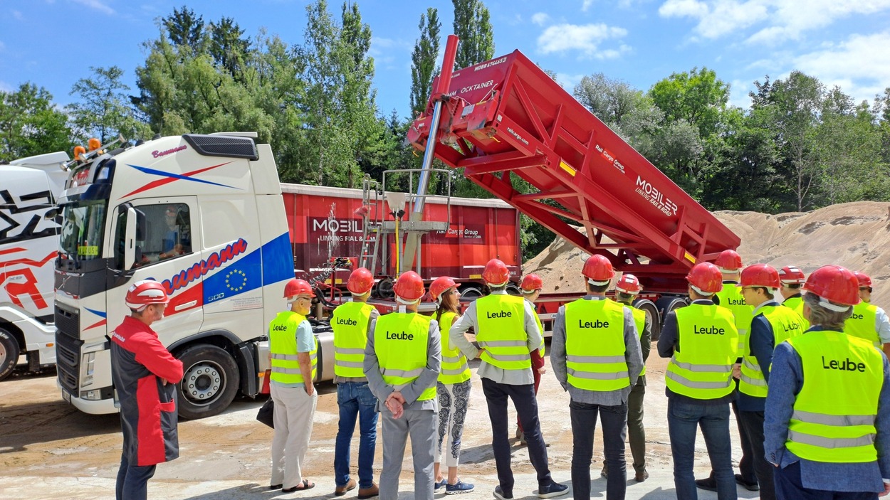 Im Anschluss an die Präsentation des „Mobiler“ wurden die Teilnehmer des ÖBB-Industrie-Dialogs durch das Zementwerk der Firma Leube geführt. Dort erhielten sie Einblicke in einen hochmodernen Produktionsbetrieb, der dank fortschrittlicher Technologie und innovativer Verfahren Baustoffe und Betonteile mit einer der weltweit niedrigsten CO₂-Emissionen herstellt.