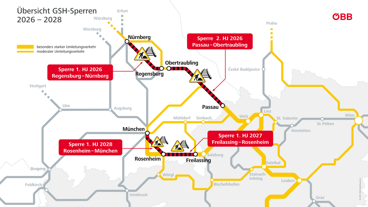 Als wichtiger Knotenpunkt im nationalen und internationalen Bahnverkehr spürt Salzburg die Auswirkungen der teilweise überalterten Bahninfrastruktur im Süden von Deutschland besonders stark. Einschränkungen auf den Bahnstrecken im Nachbarland sorgen immer wieder für Verspätungen und kurzfristige Umleitungen. Insbesondere die zahlreichen kurzfristigen Störungen am Deutschen Eck haben starke negative Auswirkungen auf die Qualität im österreichischen Fernverkehr. Die großen Korridorsanierungen 2026 und 2027 werden sicherstellen, dass diese Probleme künftig der Vergangenheit angehören und auch in Deutschland eine moderne und leistungsfähige Infrastruktur für den Bahnverkehr zur Verfügung steht – mit langfristigem Nutzen für Salzburg.
