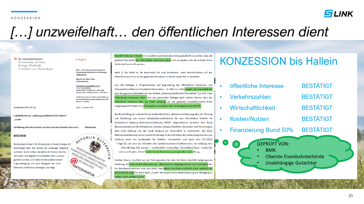 46,8 Prozent stimmten bei der Bürgerbefragung für den S-Link, also fast die Hälfte! Nun stellt der Verfassungsgerichtshof diese Abstimmung in Frage. Der Flachgau hat sich mehrheitlich für die Lokalbahnverlängerung ausgesprochen und hat das Zukunftsprojekt gewählt.