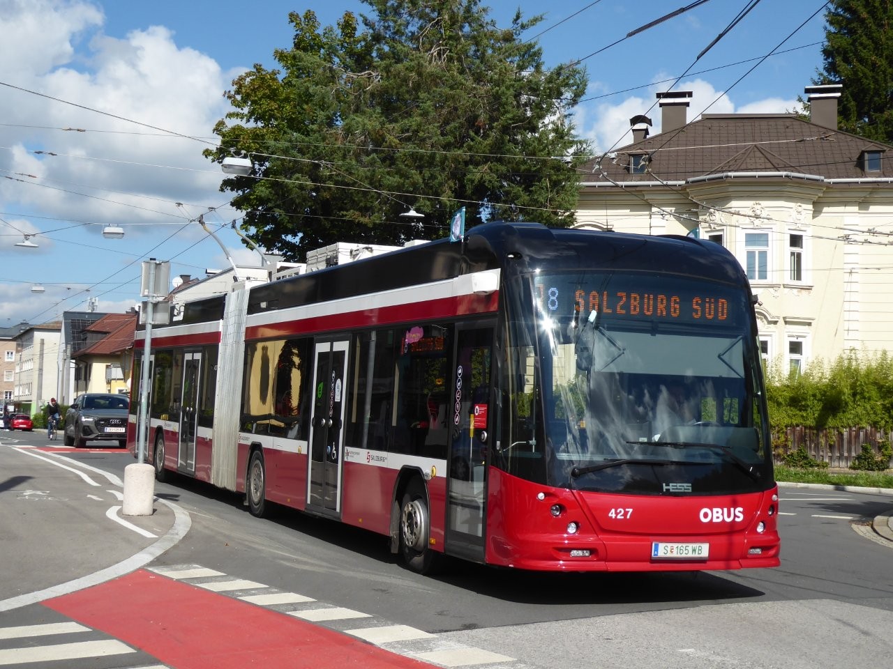After a test ride on 29. September 1940 Salzburg`s first trolleybus line opened on 1. October 1940 between Maxglan and City center after the tram service on this section endet on 25.September 1940.