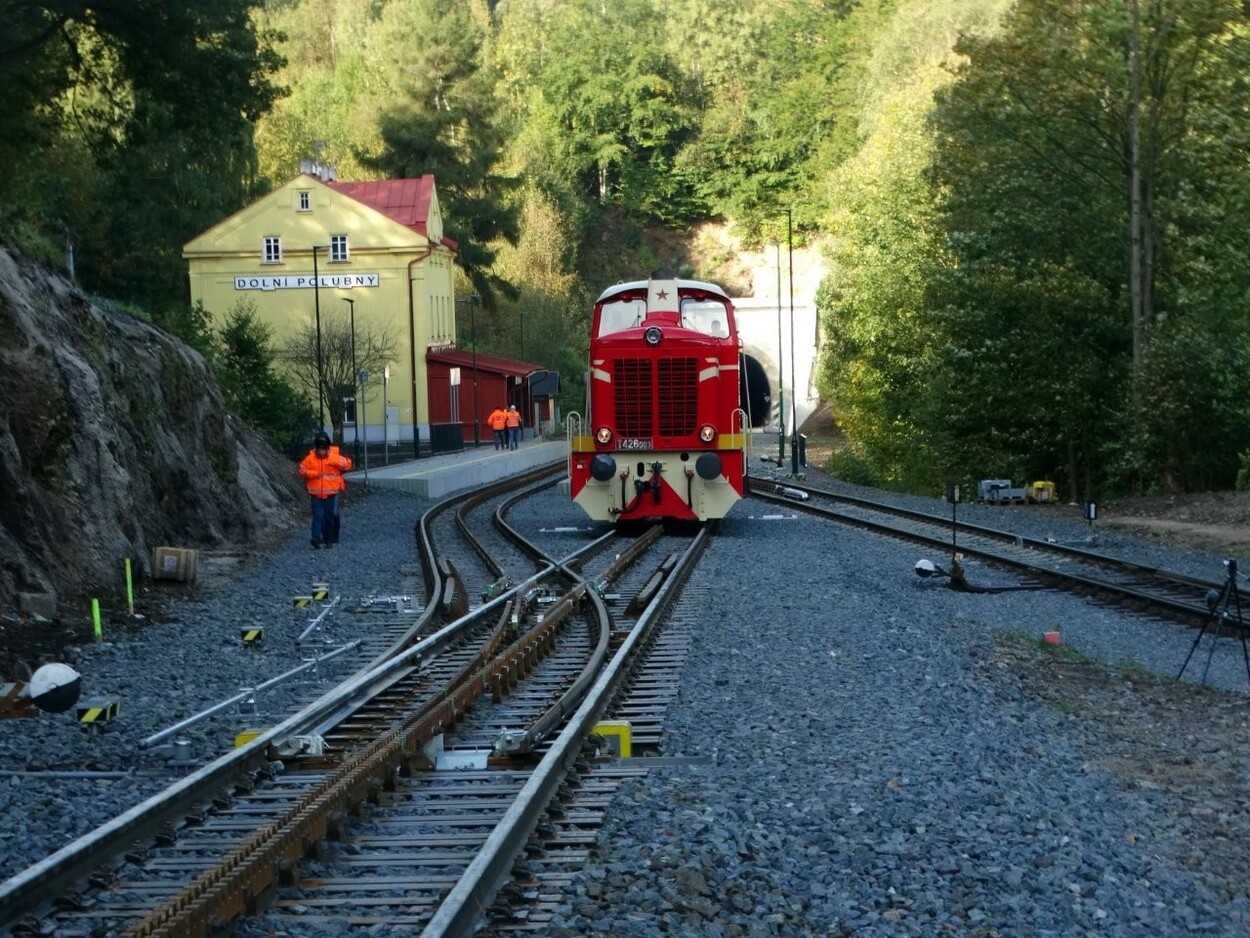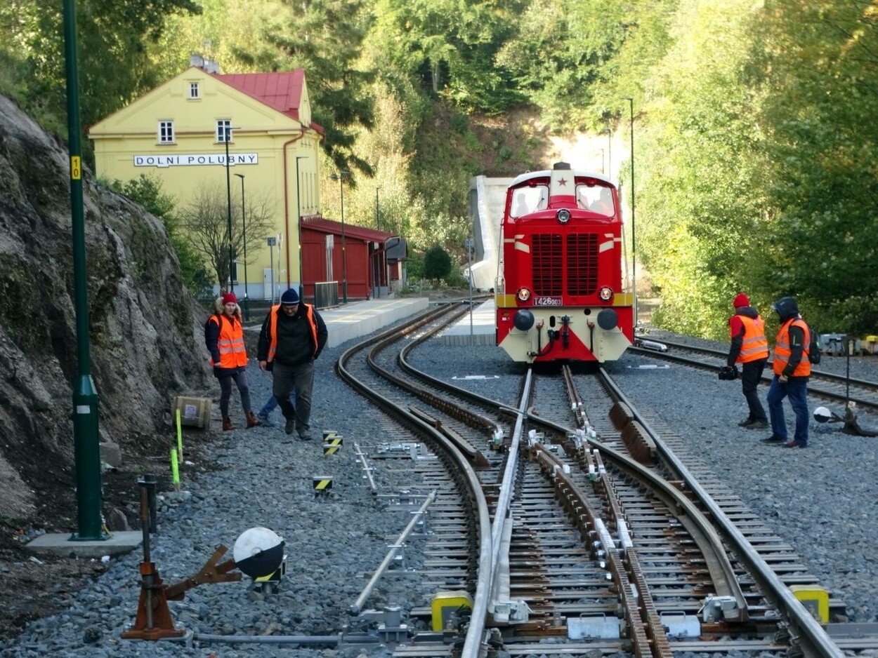 Nun konnte der erfolgreiche Abschluss der Tests der einzigartigen Zahnstangenweichen, die von DT – Výhybkárna a strojírna a.s. aus Prostějov (Tschechische Republik) geliefert wurden vermeldet werden. Diese werden im Rahmen der Rekonstruktion des Bahnhofs Dolní Polubný auf der Zahnradbahnstrecke von Tanvald nach Kořenov (Region Liberec, Tschechien) eingesetzt.