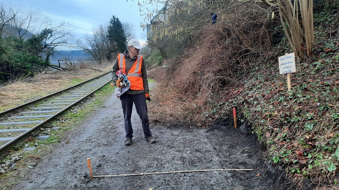 Ein weiterer Meter könnte gewonnen werden, wenn die flach abfallende Böschung der Anliegergrundstücke eingekürzt und durch eine niedrige Mauer abgestützt würde. Die wenigen kurzen Engstellen, verursacht mit (oder ohne?) damalige städtische Baugenehmigung, waren und sind für rücksichtsvolle Passanten keinerlei Problem. Doch für diese weitere Verbreiterung zum Wohl der Allgemeinheit zu werben und eventuell auch finanzielle Unterstützung anzubieten, kommt für das Stadtregiment natürlich nicht in Frage. Wenn man schon das gesamte Bahngelände nicht geschenkt bekommt, lässt sich so doch wunderbar Stimmung gegen die Bahneigentümer und Unterstützer in der Öffentlichkeit machen.