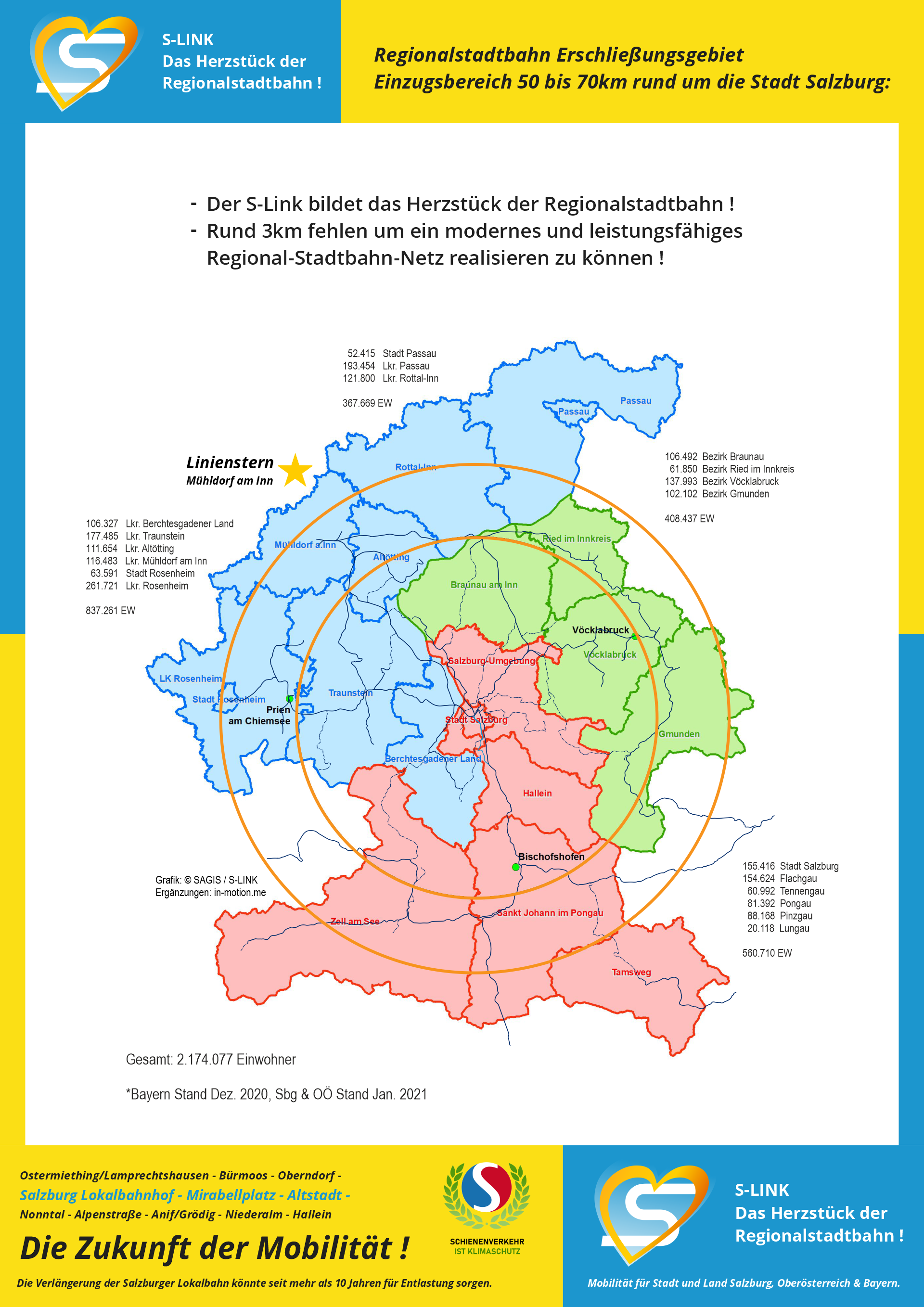 Alle Maßnahmen, ob Buslinien oder Neutorsperre, verlangen die Lokalbahnverlängerung als einzige machbare Alternative zum Stau. Die Bürgerbefragung hat zum Phänomen geführt, dass mehr Autos auf die Straßen gekommen sind, als vorher, weil die Bürger wissen, dass es keine ausreichenden Maßnahmen für den öffentlichen Verkehr geben wird. Der Verkehrsraum Salzburg umfasst nicht nur die Stadt, sondern auch den Flachgau, den Tennengau, das angrenzende Bayern und angrenzendes Oberösterreich. Dort wohnen dzt. (Zählung 2022) 2.174.077 Einwohner, was ein Zuwachs von einer halben Million gegenüber von 2012 ist. Mit diesem Zuwachs stieg auch der Verkehr, aber nicht der öffentliche Verkehr. Nach der Bürgerbefragung stieg die Anzahl der Autos in Stadt und Umland nochmals merkbar an. Diese Entwicklung ist derzeit ungebremst.